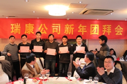 2013年1月底,公司2012年團(tuán)拜聚會(huì)在南京萬家歡酒店隆重舉行,全國各地的瑞康同仁齊聚一堂,總結(jié)了12年的工作成就,共同展望公司的美好未來。期間,表彰和嘉獎(jiǎng)了公司表現(xiàn)突出的部門和員工,并頒發(fā)了2011和2012年瑞康初級(jí)工程師證書。